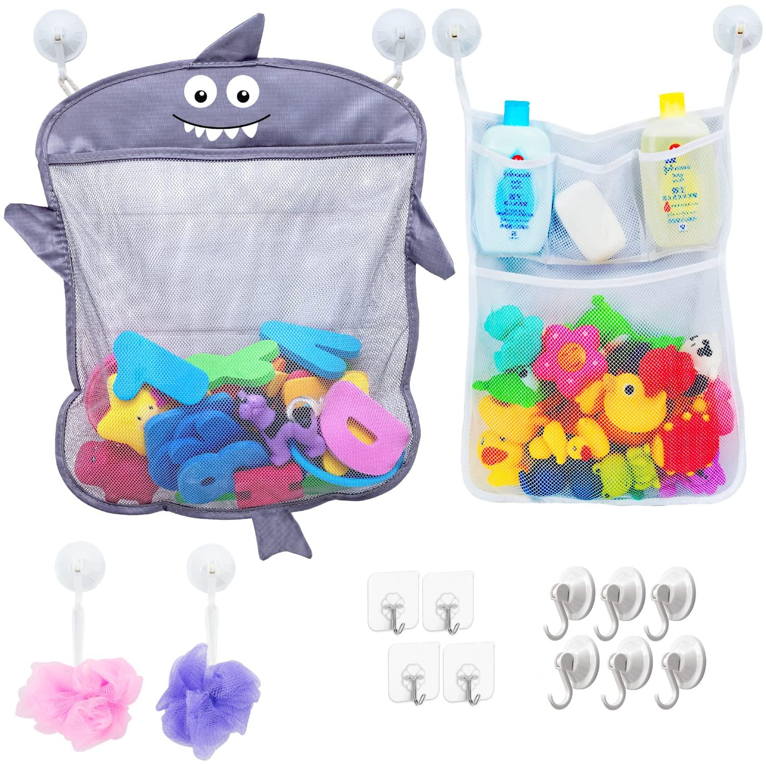 2 x Mesh Bath Toy Organizer + 6 Ultra Strong Hooks The Perfect Bathtub Toy Holder & Bathroom or Shower Caddy These Multi-use Net Bags Make Baby Bath Toy Storage Easy For Kids & Toddlers