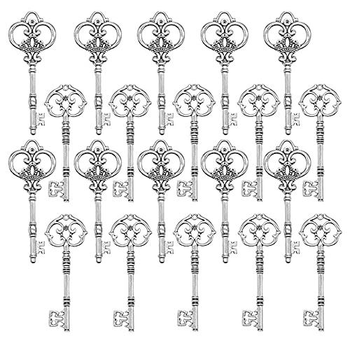20PCS Assorted Large Vintage Skeleton Keys (2 Styles) - 3 1/4" Keys in Antique Silver