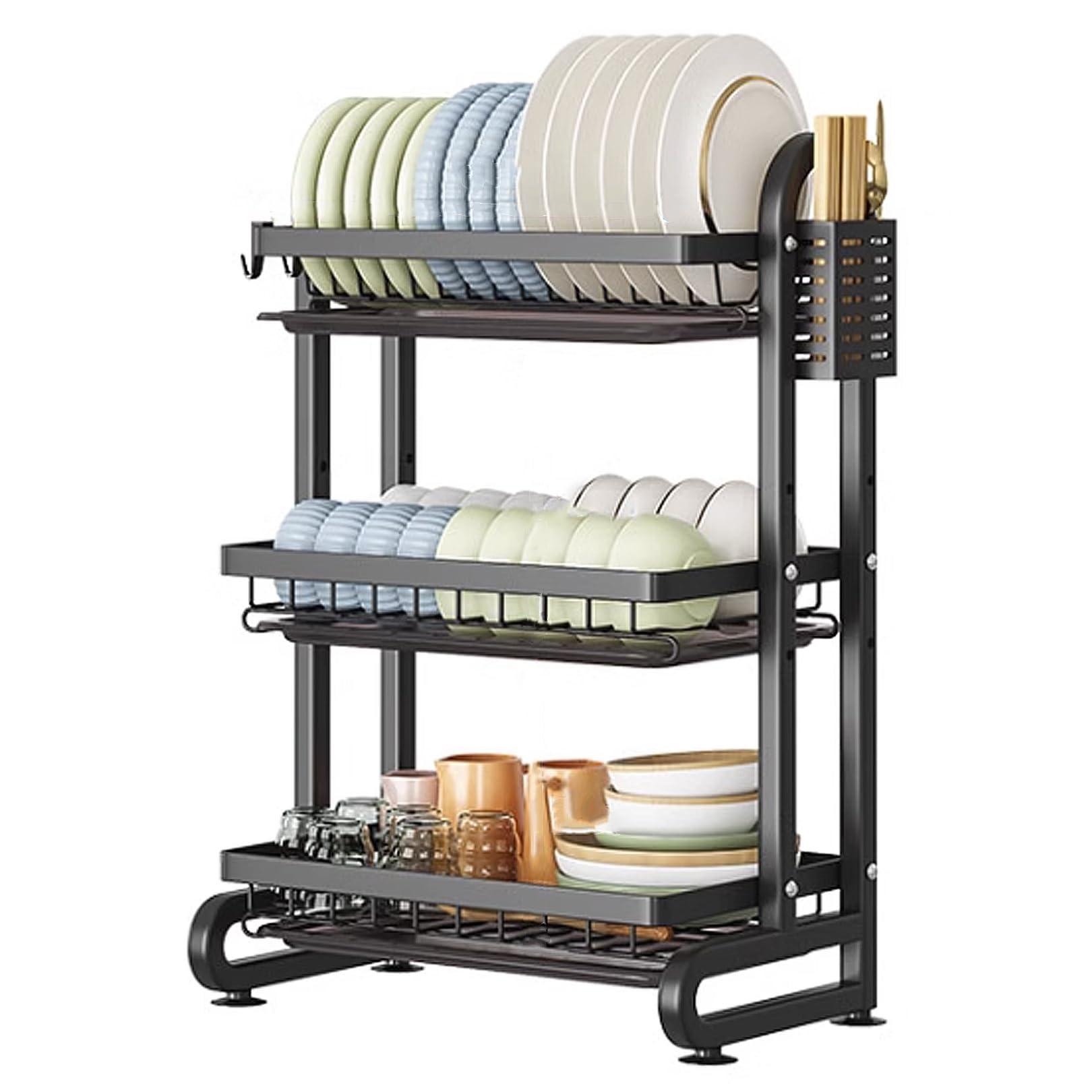 - Save Countertop Space Dish drying rack takes up little space to keep your kitchenware such as dishes, cups, bowls, spoons, knives and forks dry and neat with ease. Perfect for your kitchen countertop.