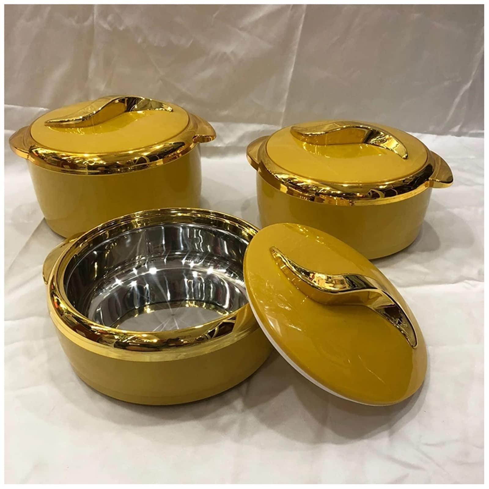 3pcs Set 1.5L 2L 2.5L Insulation Box Food Warmer Thermal Insulated Hot Pot Ramadan Event Lunch Box for Wedding Family Party (Color : Yellow)