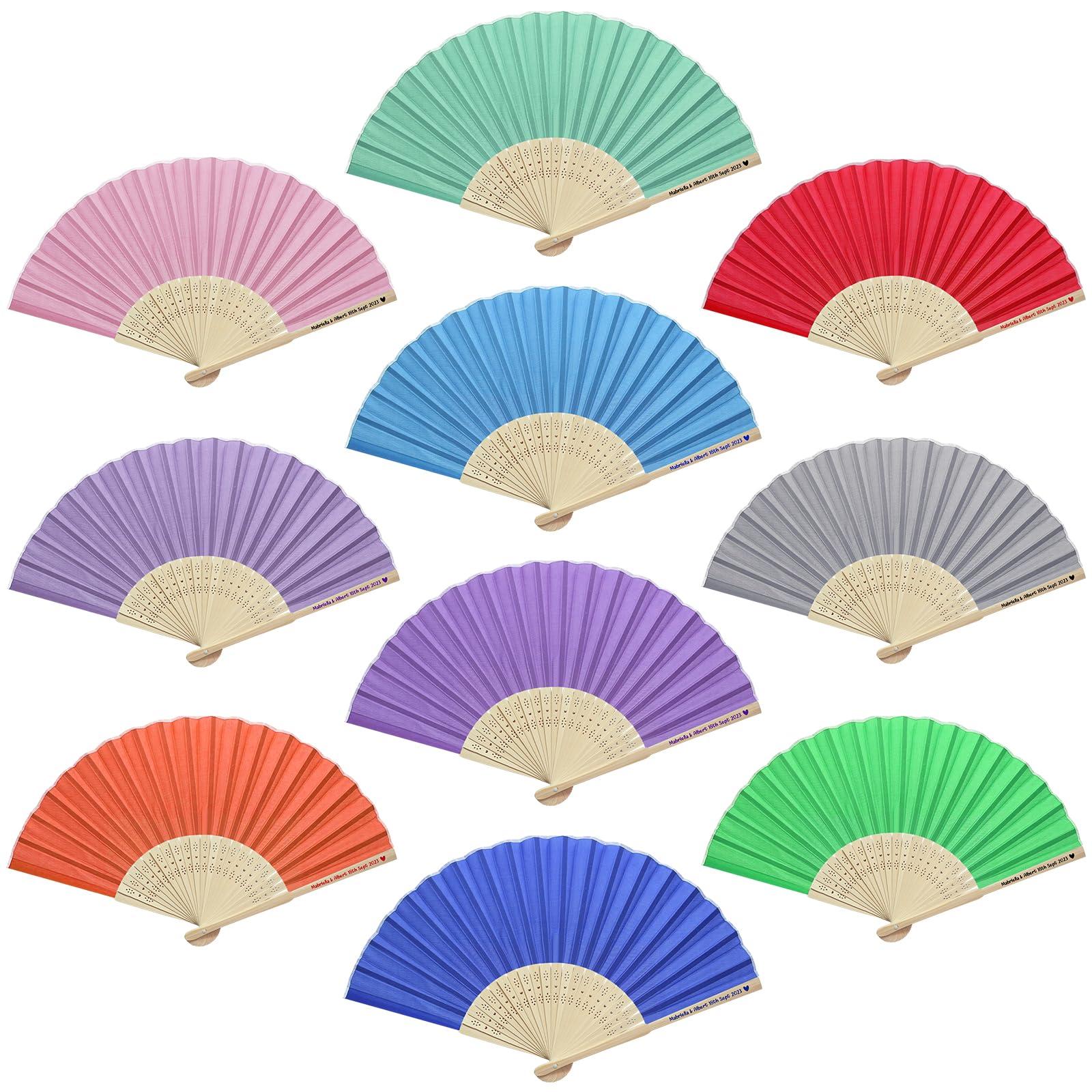 - CUSTOMIZE WEDDING FANS: The custom folding fan is suitable for most occasions, such as wedding party, dance props, stage performance, tea party, prom, bridal shower, graduation ceremony, outdoor wedding, garden party or any other summer occasions, and is also a beautiful perfect gift for friends
