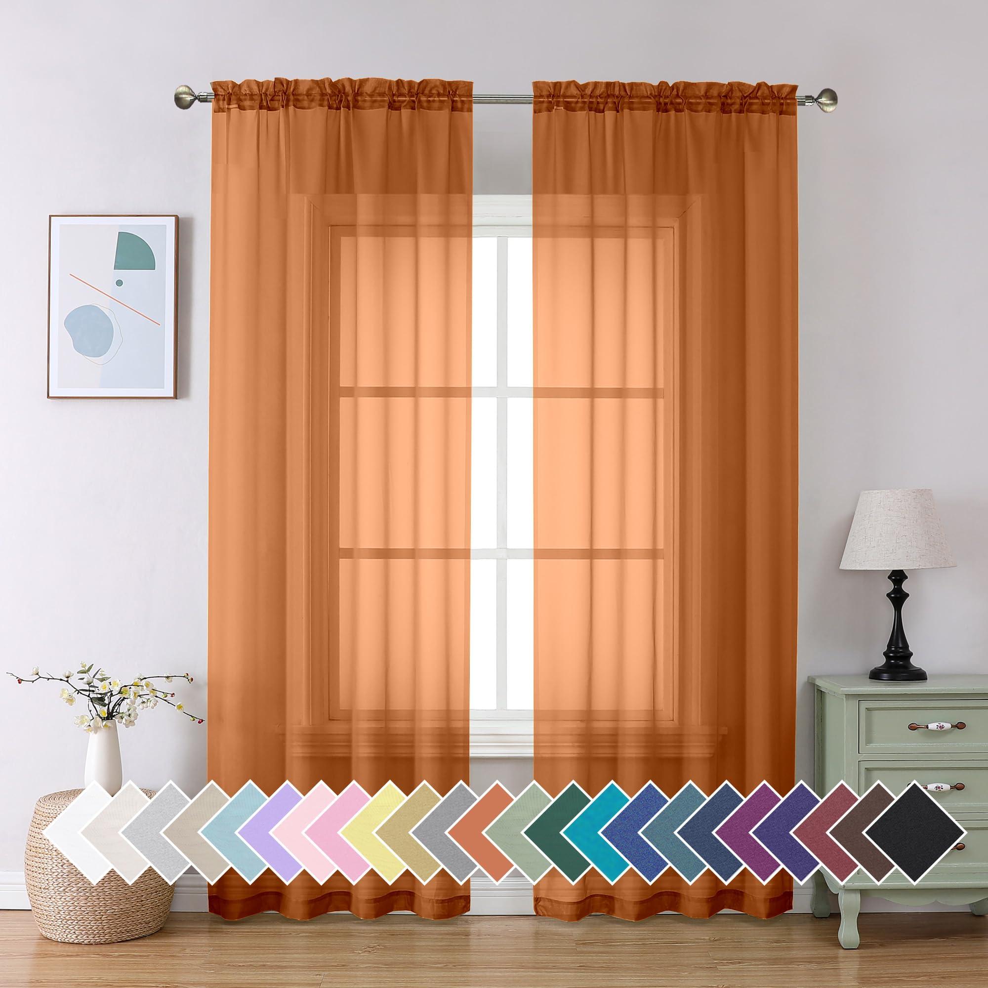 Aiyufeng Aiyufeng Orange Sheer Curtains 90 Inches Long 2 Panels Set, Light Filtering Soft Airy Voile Rod Pocket Orange Sheer Window Drapes for Bedroom Living Room, Each 42Wx90L Inches