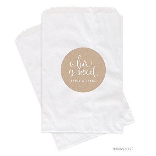 Andaz Press Andaz Press Dessert Table Party Favor Bags, Love is Sweet Enjoy a Treat, Kraft Brown, 24-Pack, for Wedding Engagement Bridal Shower Candy Buffet Treat Bags