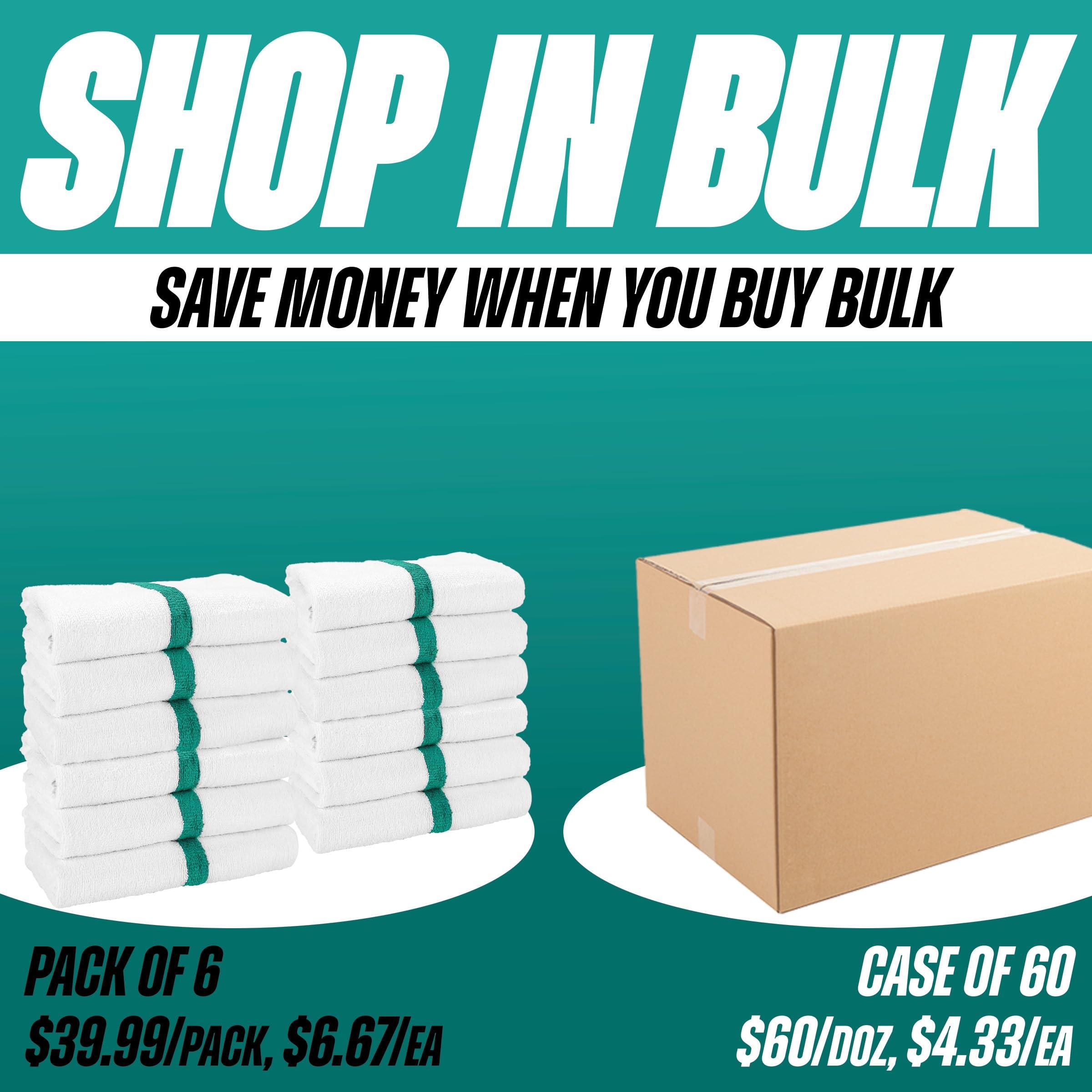 - POWER GYM BATH TOWEL VALUE PACKS: Pick up a bulk economy set of 60 white 22" x 44" gym towels with a color center stripe. Our highly absorbent quick drying bath towels are available in plain white and blue, beige, pink, green, gold, and grey stripe.