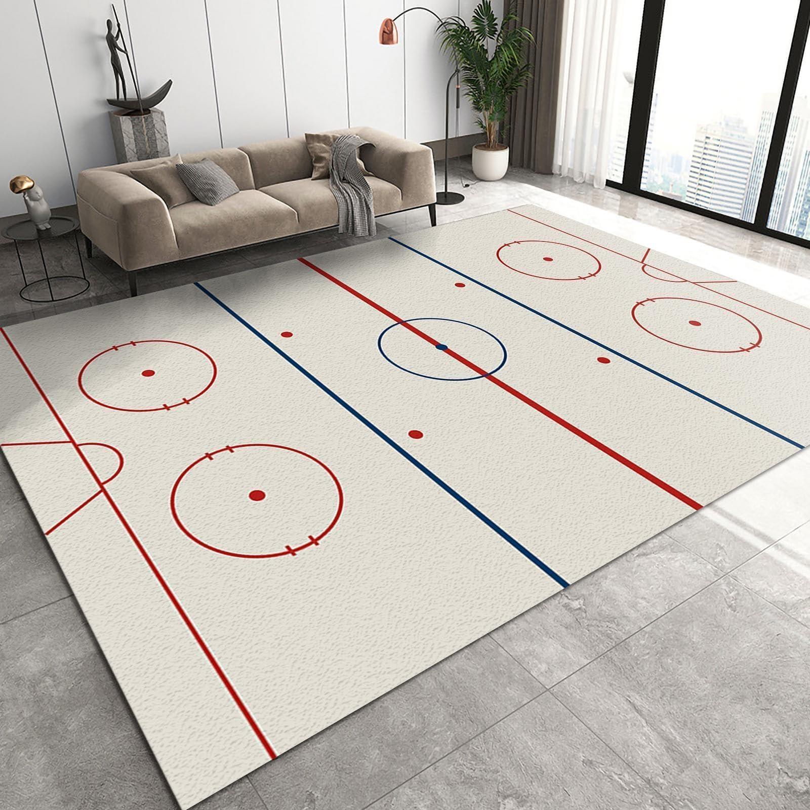 Blue and White Ice Hockey Stadium Area Rug, Simple Ice Hockey Rink Rugs Floor Carpet, Indoor Non-Slip Rug for Room Sofa Living Room Mat Bedroom Home Decor Floor Mats 4ftx6ft