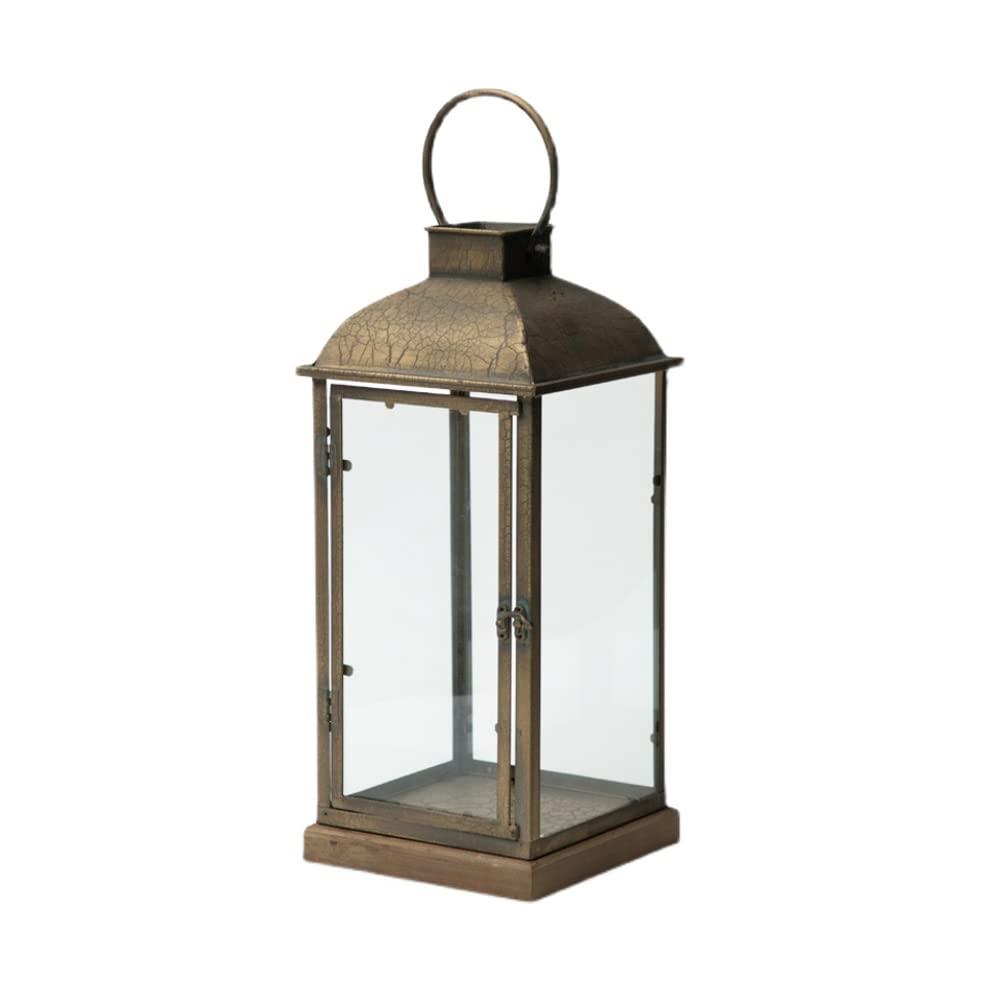 - VINTAGE CANDLE LANTERN:This elegant metal,glass lantern and wood base is a perfect candle holder or decorative accent for your home.Creates an aura of old world charm.