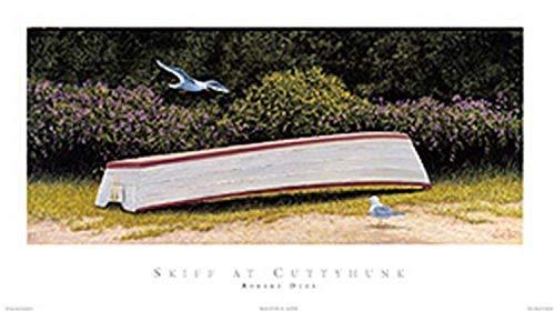 Skiff at Cuttyhunk by Robert Duff 36x20 Art Print Poster Coastal Beach White Red Wooden Upside Down Row Boat Seagulls