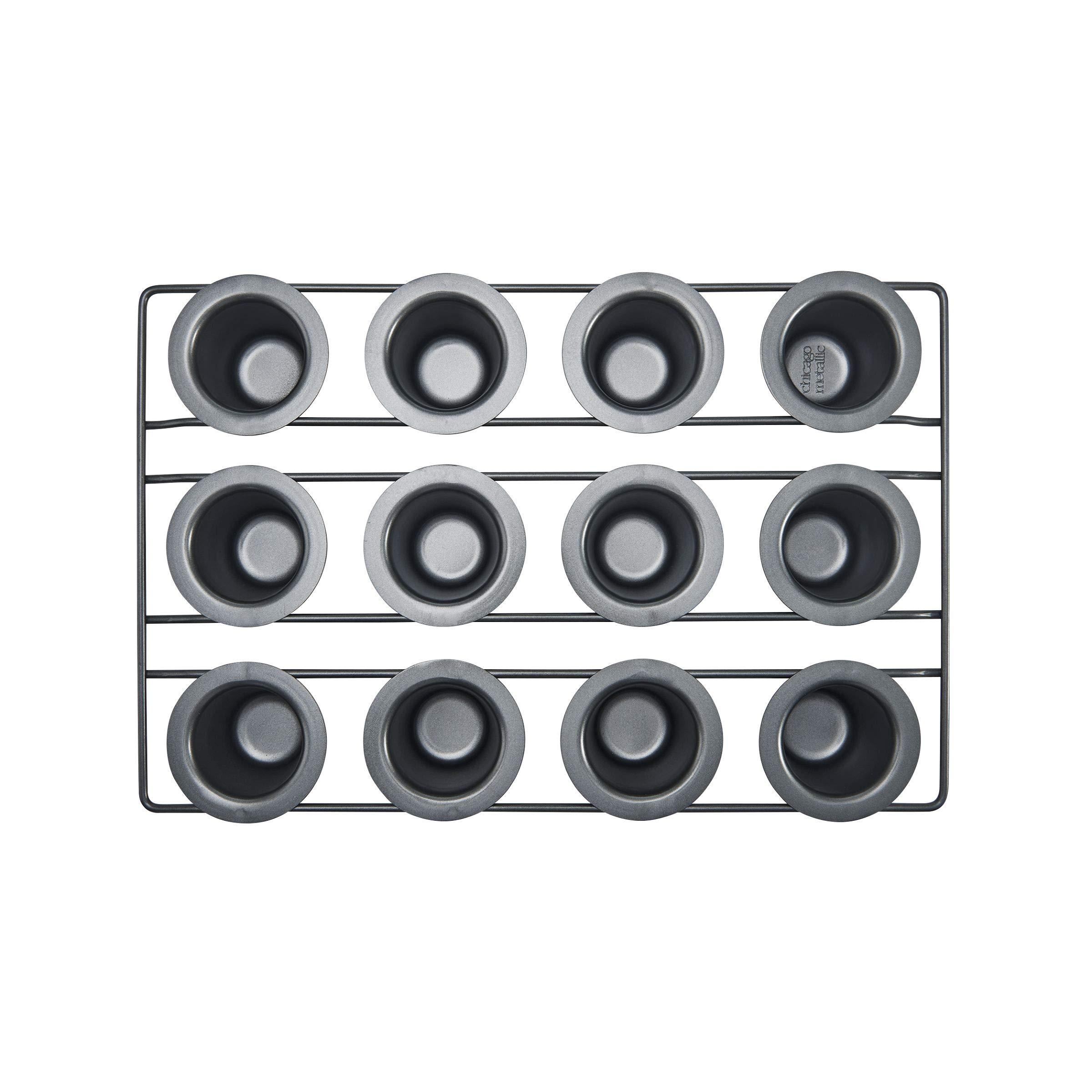 To create true popovers, this is the pan for you. Chicago Metallic has engineered this pan to ensure that every popover gets a big rise. Each 2-1/4-by-2-inch cup is suspended from crossbars and has an extra-wide lip so popovers can spread out and up. Deep tapered cups promote even baking and better air circulation. The pan is also great for making muffins and cornbread. Properly puffed, popovers are a quick breakfast indulgence with butter and jam, or a savory surprise for dinner when stuffed with a mushroom filling. Oven safe to 450F / 232C; not intended to be used under the broiler. Sharp-edged utensils and knives should not be used. At Chicago Metallic, we believe that serious baking requires serious bakeware. Thats why weve been crafting innovative equipment, for professionals and serious home bakers, for over 100 years. Weve built a global reputation one kitchen at a time. People know our products are built for durability and can be depended on year after year. Were proud to offer three distinct lines of premium bakeware plus stylish, innovative specialty bakeware and baking essentials. The Chicago Metallic Professional line of bakeware makes cooking and baking a delight. The non-stick surface easily releases each recipe and makes clean-up effortless. Its the preferred choice of bakers who understand quality and design, but also want professional-grade durability.