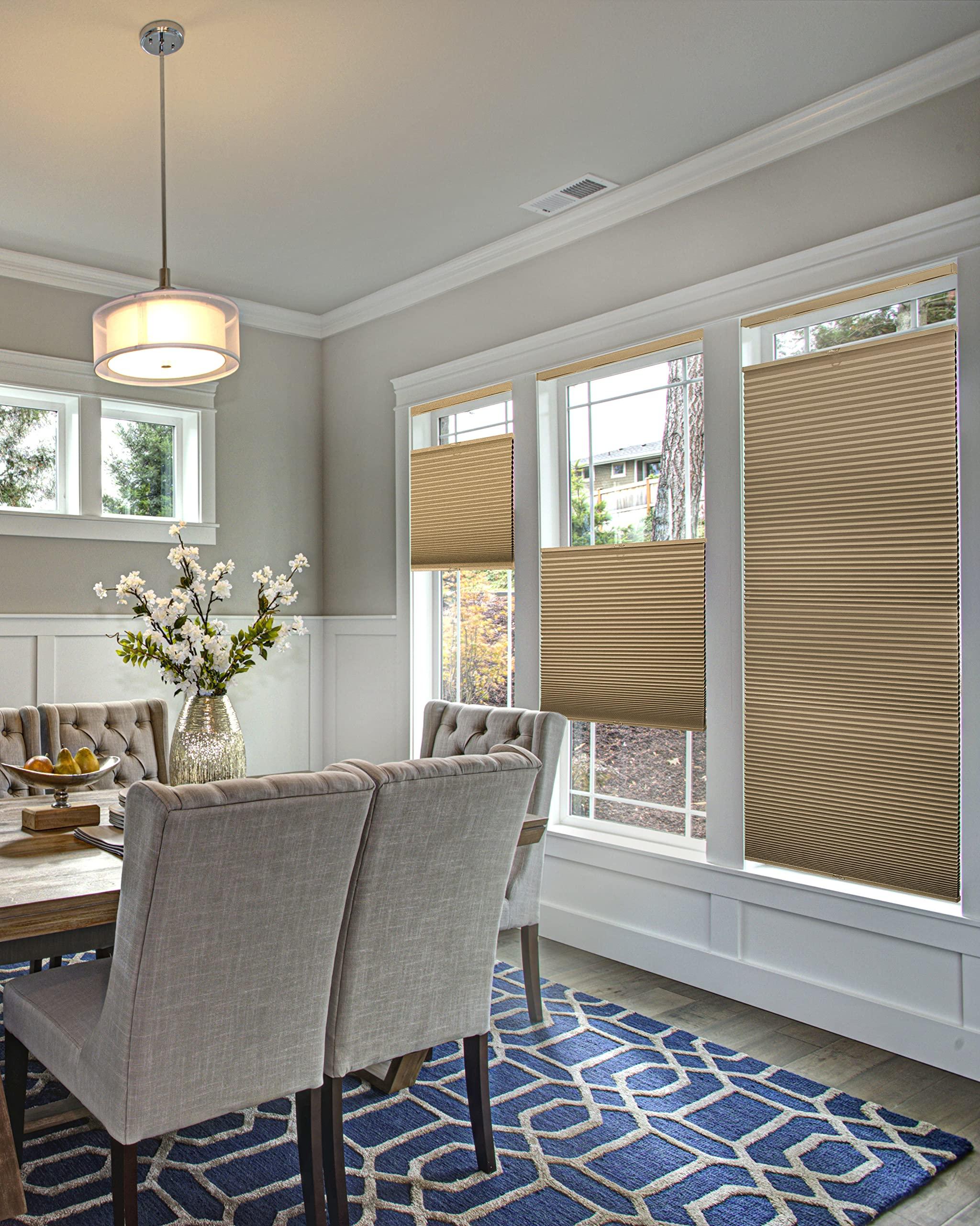 CHICOLOGY, the Solution for Simple Affordable Blinds Cordless Blinds for Windows - Pleated Shades Cellular shade with a honeycomb design. Pull down shades for windows with cordless function. Window Coverings Shades Best for: Bedroom : Obtain complete privacy with our blackout blinds for bedroom windows Sunroom Blinds : For a bright and inviting ambiance, select one of our light filtering cellular shades cordless blinds Blackout Shades for Nursery : Our cordless shades offer safety for homes with kids and pets Door Window Shade : Light filtering shades that work as a door shade to provide privacy from outside RV Blinds for Camper Windows : Cordless cellular shades are modern and durable for everyday use Measurement Guide for the Perfect Fit: This cellular blind can be used for inside mount or outside mount. For inside mount a minimum 1.5-inch depth is required or 2-inch for a flush inside mount. This product comes with a 1/4-inch width deduction. We're Here to Help: Send us a message with any questions or concerns Free color samples available. Request free sample swatches today. Contractors, designers, builder welcome-call us for bulk pricing