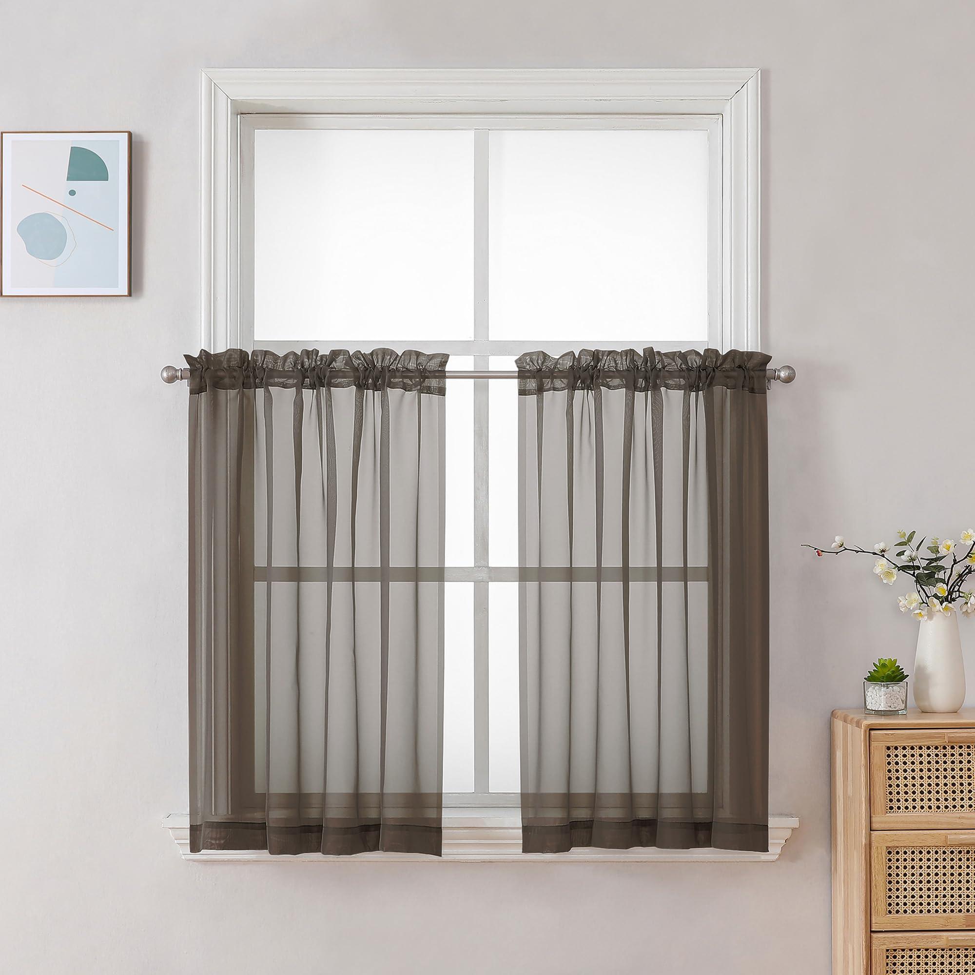 Chyhomenyc Chyhomenyc Chocolate Brown Sheer Curtains 30 inch Length 2 Panels, Light Filtering Voile Rod Pocket Short Window Curtians for Bathroom Living Room Farmhouse Small Windows, 42Wx30L inches