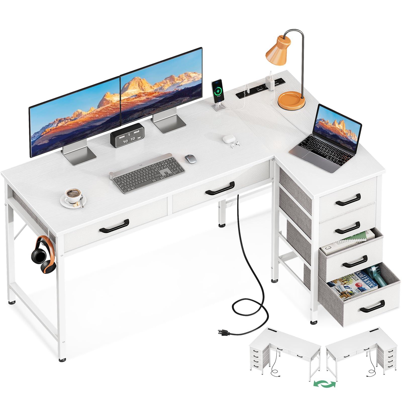- L Shaped Desk with DrawersThis home office desk is equipped with 6 fabric drawers. You can put your office supplies or gaming equipments in order and dust-free. The drawers are designed to keep your space organized and clutter-free.