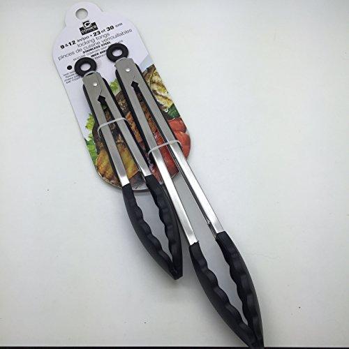 Cook\'s Corner 9\" & 12\" Stainless Steel Locking Tongs w/Silicone Grip & Heads (Black)