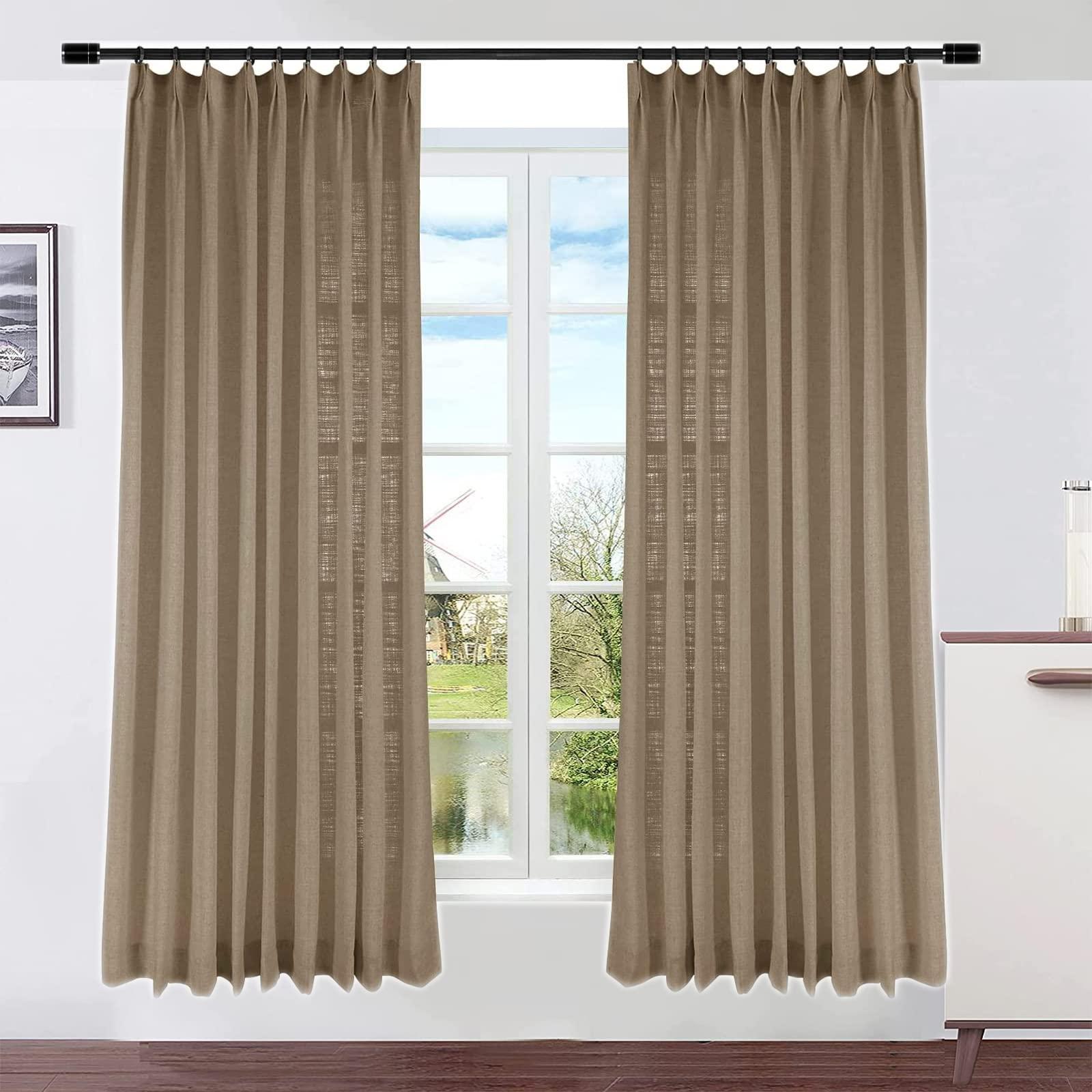 DotheDrape Pinch Pleat Curtain, 120 W x 100 L inch Light Filtering Linen Curtain Drape Panel for Living Room and Silding Door (1 Panel, Rust Brown)