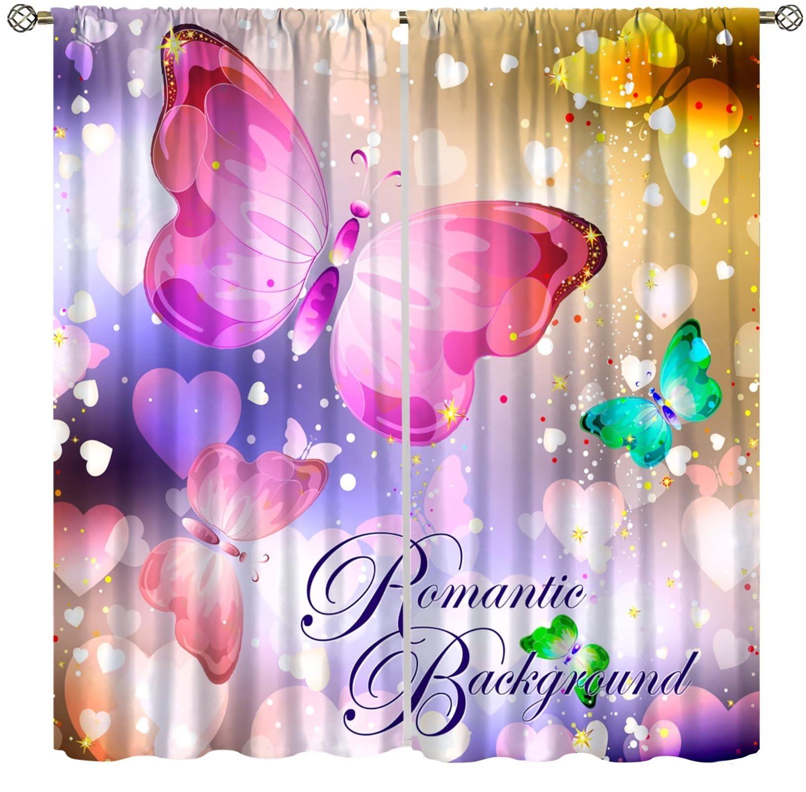 Dream Butterfly Curtains Colourful Butterfly Girl Bedroom Decor Privacy Curtains Decorations Romantic Theme Atmosphere Suitable for Bedroom Living Room Set 2 Panels,42x45 Inches