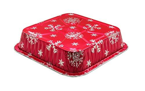 Elevate your holiday baking with our holiday foil cake pan, a vibrant and practical solution for creating and sharing your favorite treats. This combo pack includes both pans and lids, ensuring you have everything you need for convenient and stylish baking. This baking pan is an ideal choice for cakes, cookies, brownies, candies, fruitcakes, and more. The added 1.5 inches height from the lid ensures secure storage and transportation. Made from brightly colored aluminum, this disposable cake pan adds a festive touch to your creations. Importantly, the color won't fade even under oven temperatures, maintaining its cheerful appearance. The product is available in a convenient combo pack, ensuring that with each 10-count purchase, you receive not only 10 pans but also 10 matching lids for a complete baking solution. The plastic snap-on lid is a game-changer, providing a tight and secure fit to keep your delicious treats fresh during storage and transportation. It complements the pan's festive design while adding practicality to your baking endeavors.