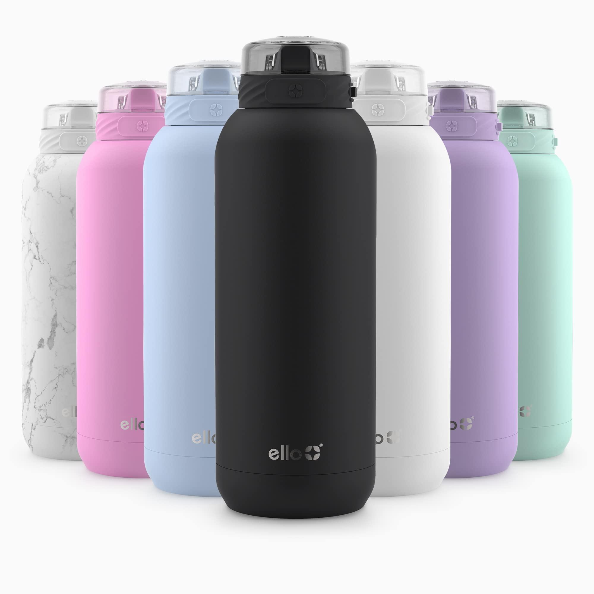Elevate your hydration experience with the Ello Cooper Vacuum Insulated Stainless Steel Water Bottle. Available in 18oz, 22oz, 32oz, and 40oz sizes, its a perfect fit for every age. Plus, the 18oz and 22oz sizes are car cup compatible. Featuring a soft silicone spout and a secure, locking dome lid, Cooper ensures your drink surface stays fully covered during transport. The BPA-free internal plastic straw provides safe and easy sipping. Constructed from premium 18/8 stainless steel with an ultra-durable powder coat finish, this bottle resists chipping and rust for lasting durability. Enjoy refreshingly cold drinks for over 24 hours. All parts are top-rack dishwasher safe, but handwashing is recommended for longevity. The spout can be fully disassembled for thorough cleaning, reaching all nooks and crannies with ease. Express your style with our selection of vibrant colors, allowing Cooper to complement your lifestyle and personal fashion statement.