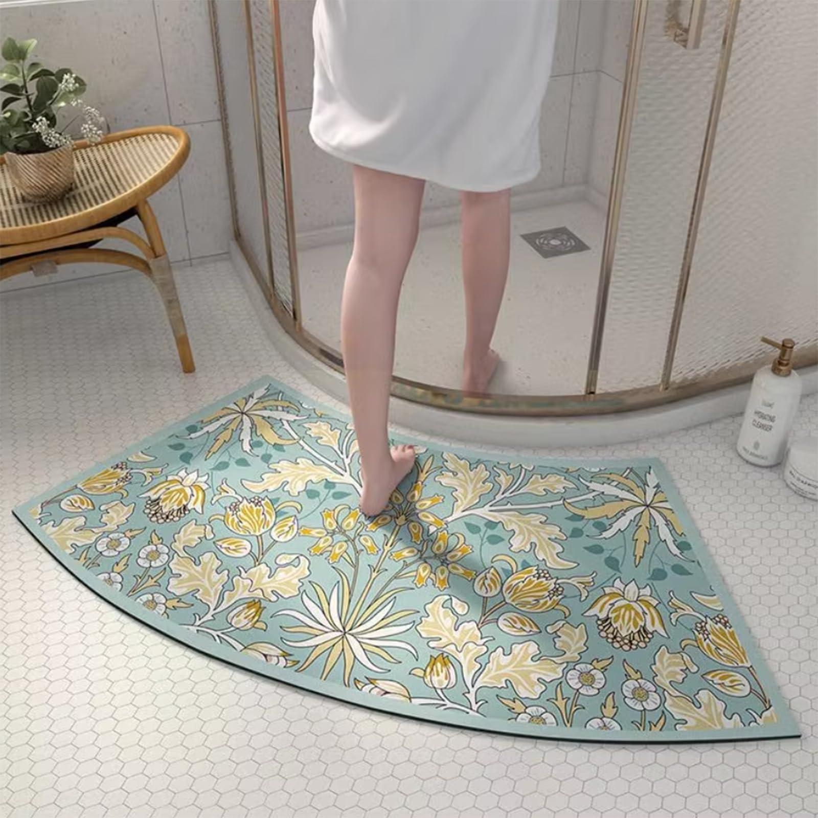 - Strong Absorbent & Fast Drying Curved Bath Mat: Strong water absorption, fast water permeation, no water accumulation, The diatomaceous earth foam of the bath rug can quickly absorb the water on the feet