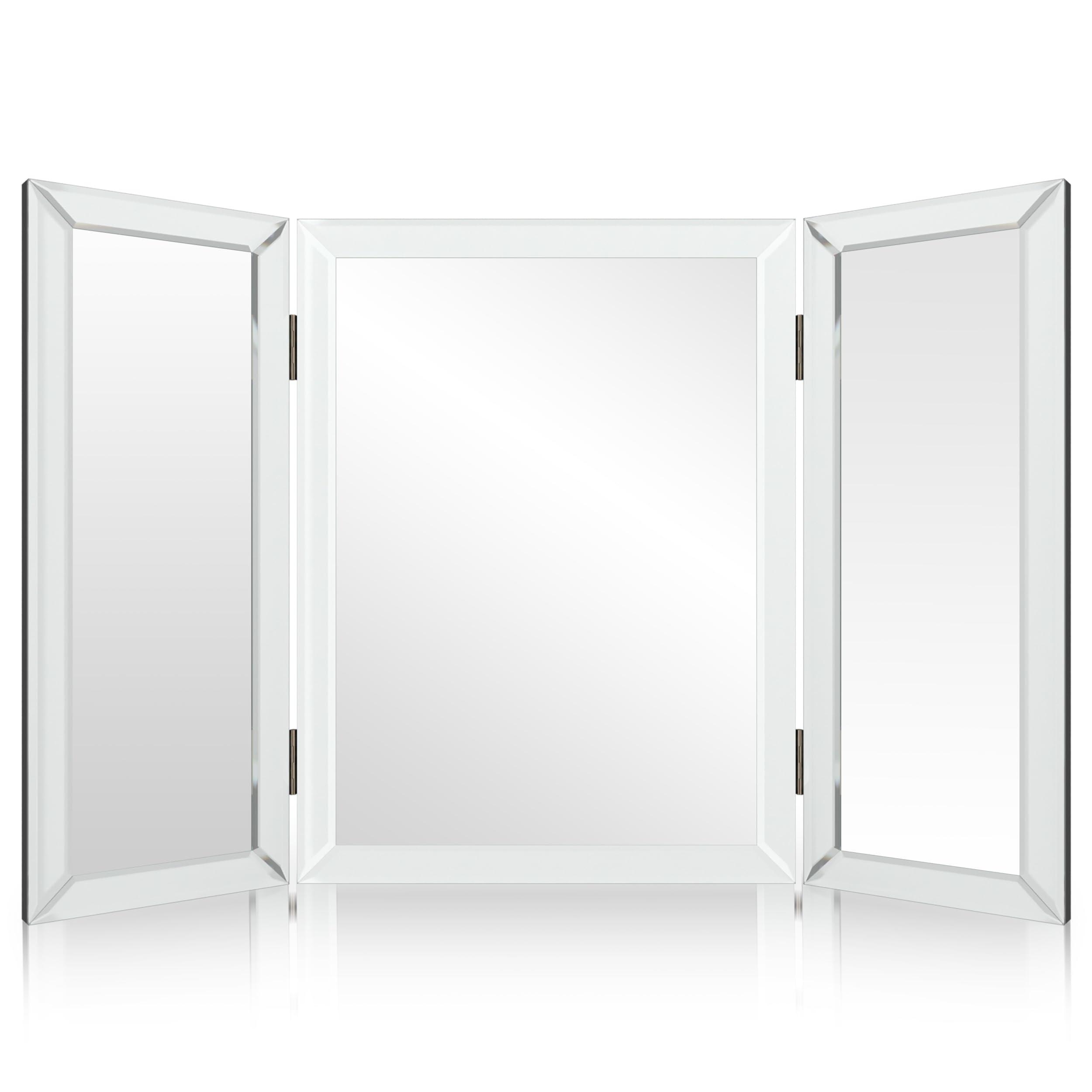 - PERFECT FOR ANY ROOM: Take a giant leap up from ordinary three-paneled mirrors that often leave you guessing when it comes to grooming. Combining the classic aesthetic of your mothers vanity with modern quality construction that is built to last, this beautiful three-paneled folding mirror is a true show piece for any console table or wall in your bedroom, bathroom, powder room, hallway, and more.