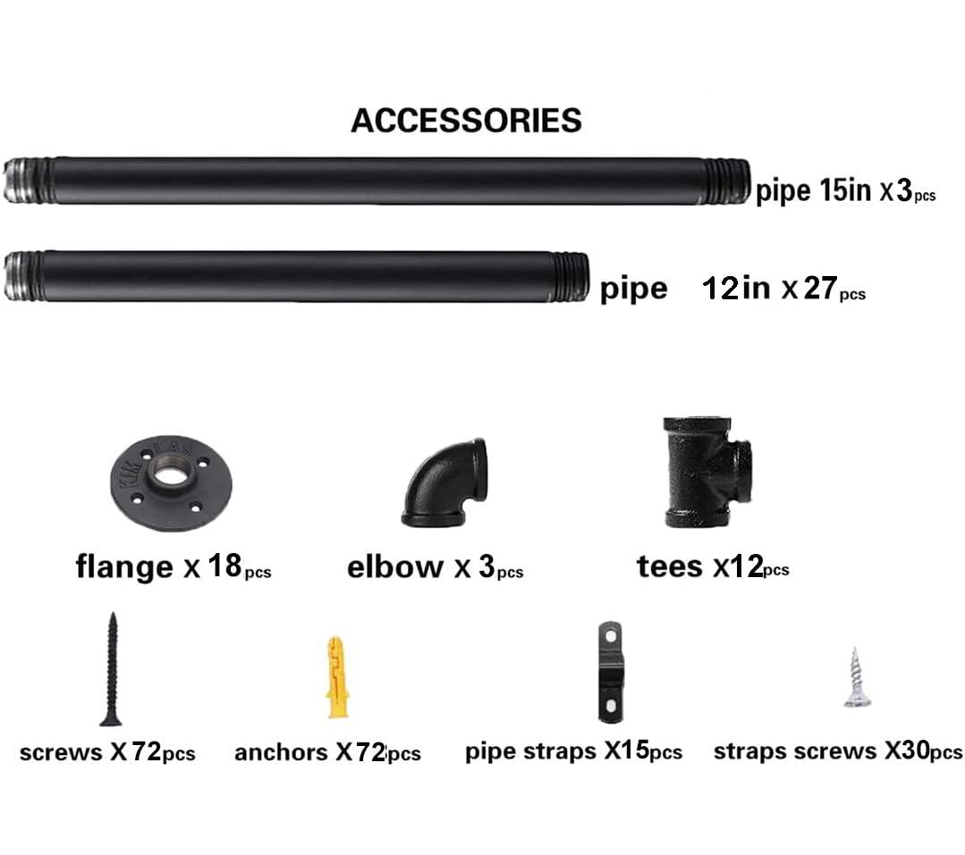 - MatrialIndustrial pipe shelving features a sturdy metal pipe brackets ,Painted black matt, Hardware Only,No plank Included.
