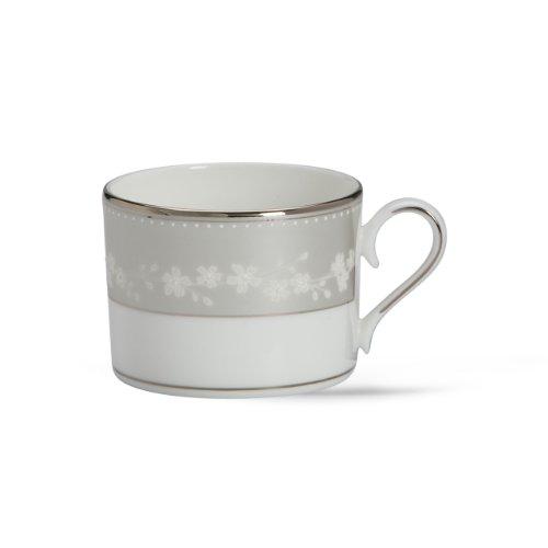 - Crafted of white bone china accented with precious platinum
