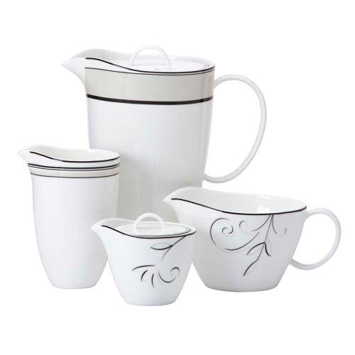- Includes large pitcher with lid, small pitcher, gravy and creamer/sugar with lid