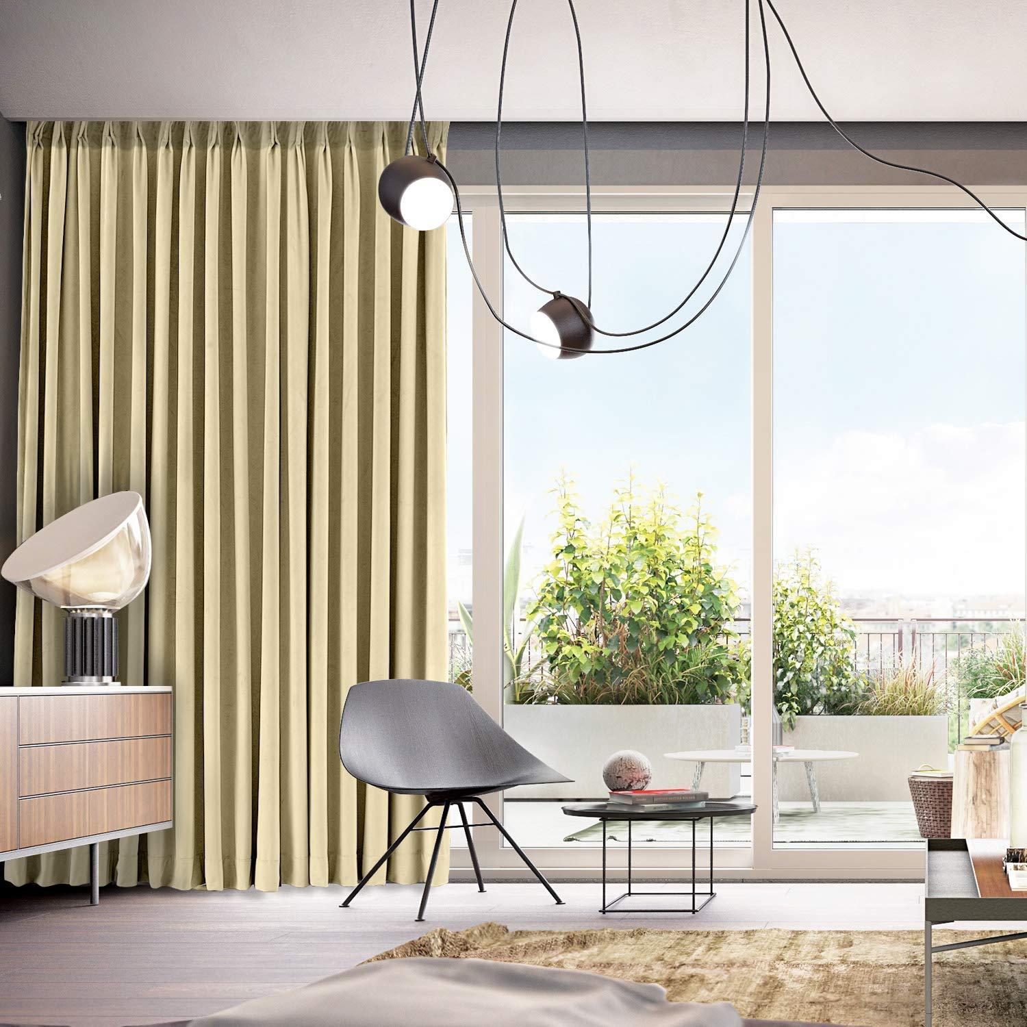 - Super heavy and soft Blackout Curtain Panels are very upmarket. Besides, 70%-85% light blocking. Darker Color block more light, light color block less light) thermal insulated, soundproof, Fade-resistant, energy-efficient. Thread trimmed and wrinkle-free, both sides are the same color.