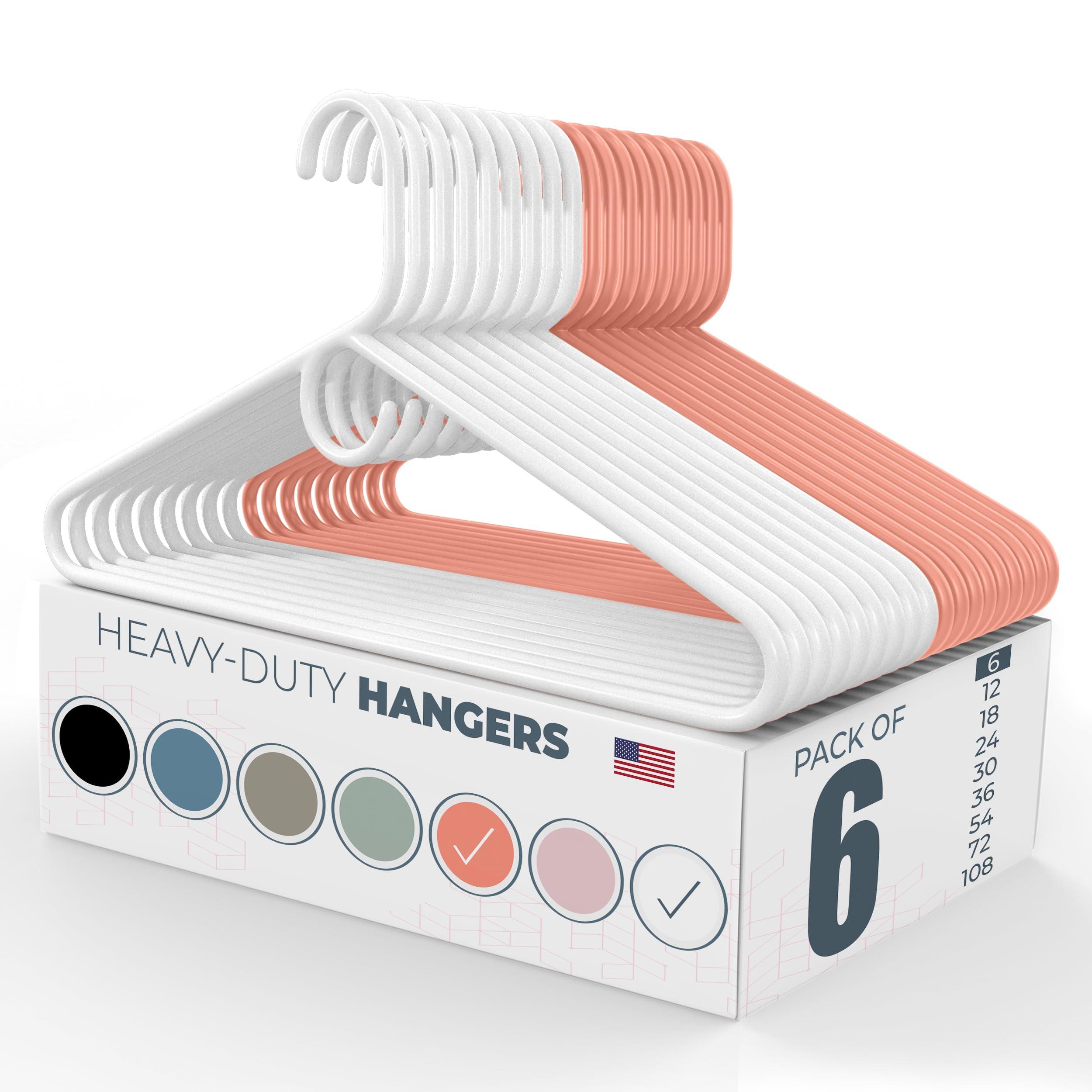 - You will receive 3 White Hangers and 3 Peach Hangers | HEAVY-DUTY CLOSET HANGERS - A plastic hangers bulk set proudly made and packaged in the USA. Try out a coat hangers 24 pack or choose from multiple pack sizes and colors guaranteed to perfectly fit any closet!