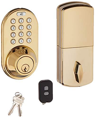 MiLocks XF-02P Digital Deadbolt Door Lock with Keyless Entry via Remote Control and Keypad Code for Exterior Doors, Polished Brass