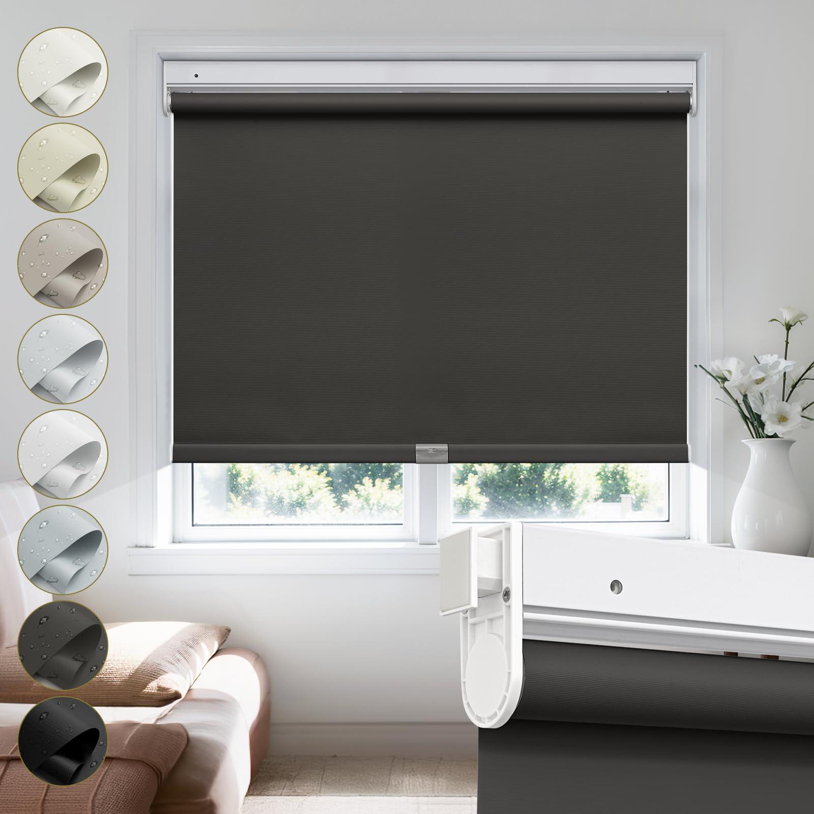 • Waterproof Roller Shades No DrillDesigned with durable waterproof fabric,smoothness,complete wrinkle resistance,easy to clean,making them ideal for wet areas like bathrooms and kitchens.Wrap-around bottom beam makes the waterproof roller blinds for windows more beautiful and color coordinated.