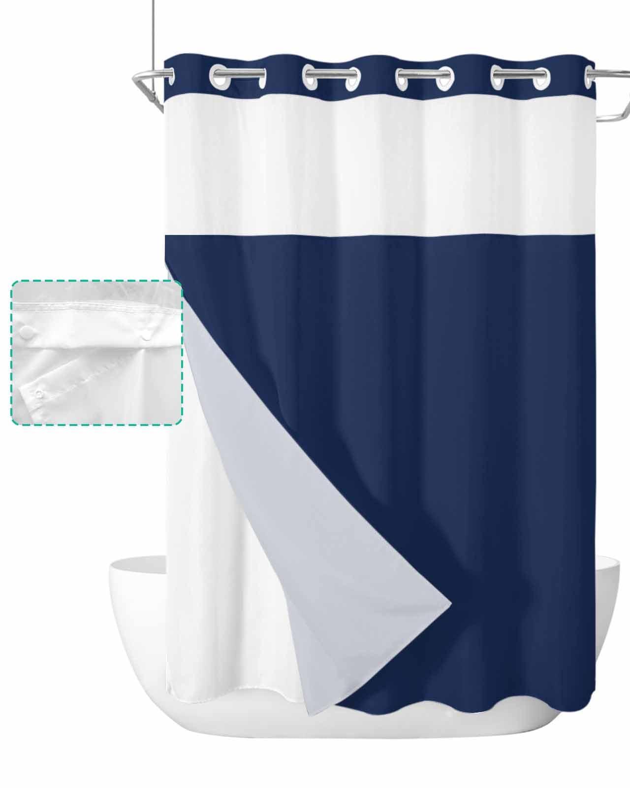- No Hook Shower Curtain with Liner Set: Say goodbye to tedious cleaning routines! Our shower curtain and liner set comes with a convenient detachable snap-on liner that is easy to remove off for clean. The Split Rings design snap in shower curtain liner replacement let you hang them easily. No need to buy hooks and no need to remove the rod. The "hookless" hooks on the top save you from having rusting metal hooks or cheap looking plastic hooks.