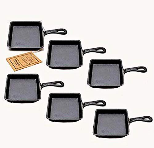 Square Single Serve Skillet, Cast Iron, Old Mountain, Pr-Seasoned Set of 6 . Perfect for family or large gatherings. Made by Old Mountain, . Great for stove top, campfire, or oven cooking. Essential for any kitchen, Old Mountain pre-seasoned cast iron cookware heats evenly, retains the heat, and is more versatile than any other type of cookware available. Cast iron will fry, saut', grill, roast, stew and bake. Each Square Single Serve-Serving Dish measures 5 3/4 square x 3/4 High.