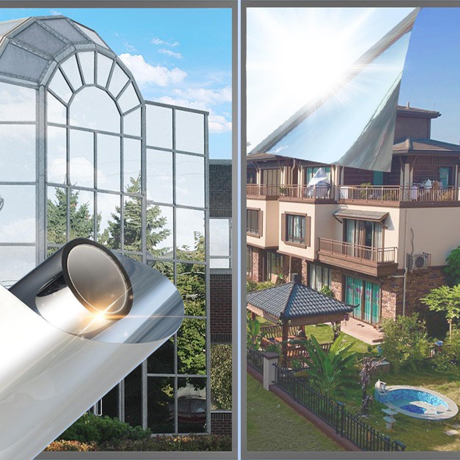 HEAT REFLECTIVE AND ENERGY SAVING: Our reflective glass film is designed with a mirror effect on the outside, which reflects some of the heat back, reducing the amount of heat transmitted through the window glass and is an instant and economical way to reduce glare, for you and yours A more comfortable indoor space for your family.