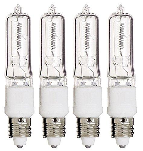Pack of 4 – 100 Watt JDE11 Halogen candelabra bulb – 100W T4 120V Light Bulbs-Clear Finish -E11 Mini-Candelabra Base T4 Bulb–Dimmable-Warm White– Q100CL/MC, for Chandeliers, Pendants, Cabinet Lighting