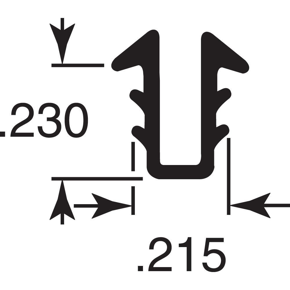 This glass glazing channel is constructed of top quality vinyl and it is gray in color. It holds single glazed glass from 0.085 inch to 0.101 inch in thickness. It measures 0.215 inch wide x 0.230 inch in height and comes in 200 ft. lengths. This glass glazing channel is used for the construction or repair of glass and Plexiglas windows made of extruded aluminum frames.