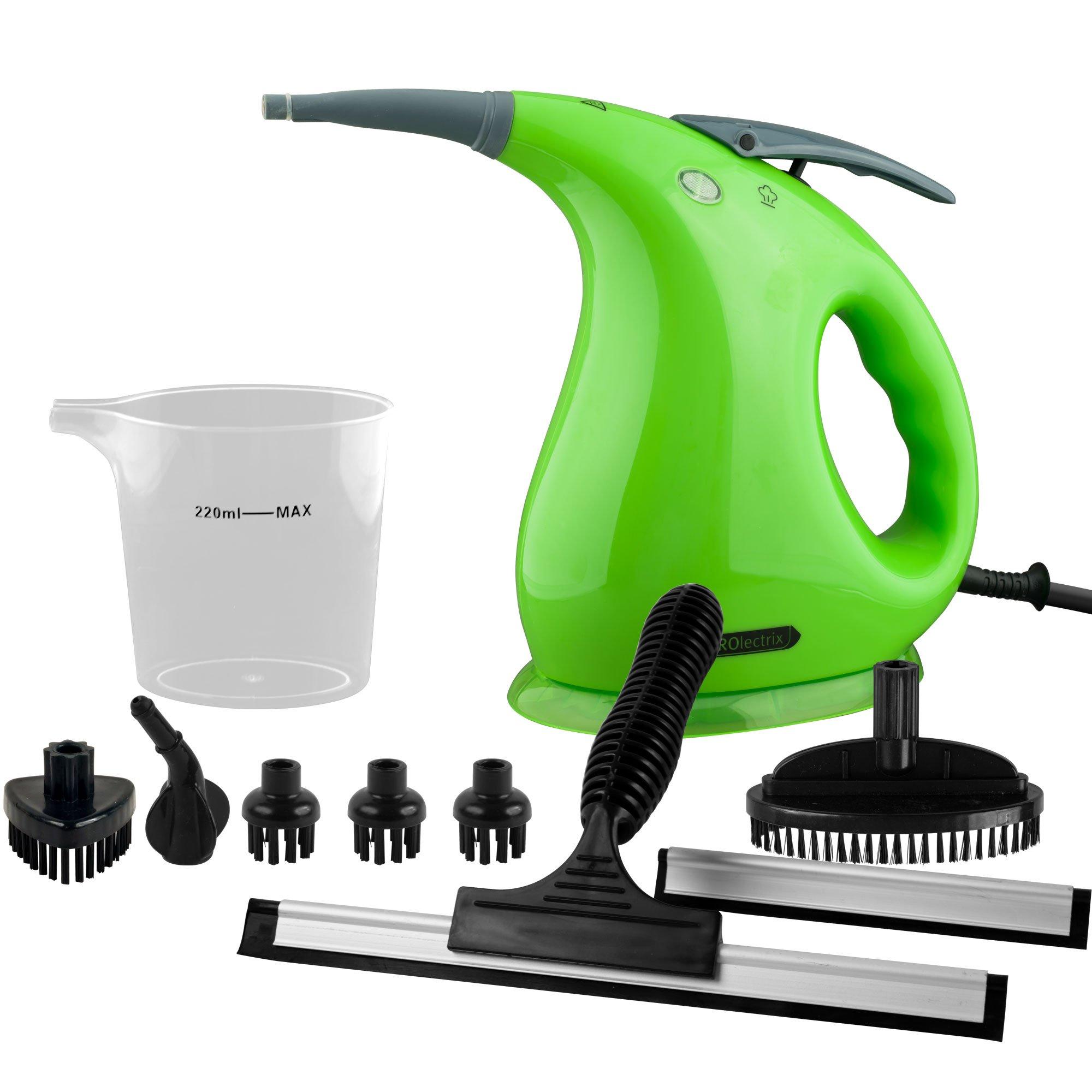 The PROlectrix Handheld Steam Cleaner provides 1500W of steam power for effortless cleaning that cuts through dirt. An improved 400ml tank allows you to do nearly twice the work of other steam cleaners.Save money and help the environment simultaneously by using less cleaning products and harmful chemicalsThe ergonomic design of the PROlectrix Handheld Steam Cleaner is both functional and stylish.Quit struggling with your old cleaning supplies and harmful chemicals and treat yourself to the PROlectrix Handheld Steam Cleaner.