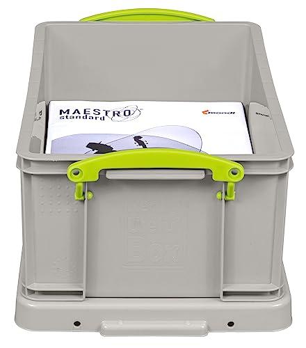 This Really Useful Box is a recycled, eco friendly, solid plastic box for multi-purpose storage. This 9 litre box comes with a lid and clip lock handles to keep its contents secure. It can be used for storing a range of items such as office supplies, school stationery, crafts items, A4 paper, shoes and many more. If used for storing CDs or DVDs, this box can hold 20 DVDs or 40 CDs. Made from sturdy polypropylene, this storage box is extremely durable, and is transparent to allow easy identification of contents. These boxes can be easily stacked on top of each other, offering a handy space-saving option. This 9 litre Really Useful Box is ideal for home, office, school and arts and crafts storage. Capacity: 9 Litres. Dimensions W x D x H: 395 x 255 x 155 mm (external). W x D x H: 335 x 210 x 140 mm (internal)