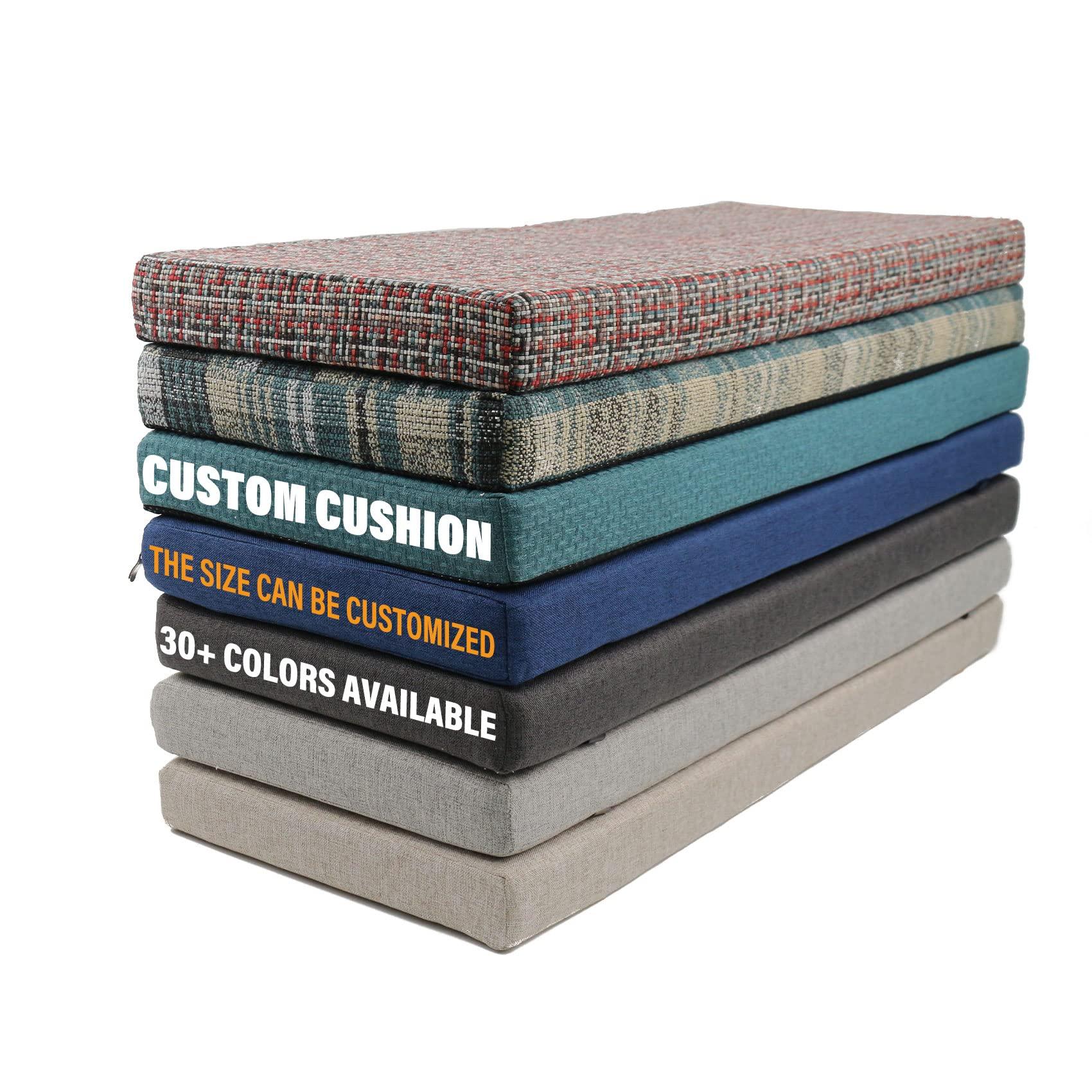 - 70D HIGH RESILIENCE SPONGE Custom bench cushions use 70D sponge. The sponge is highly resilient and durable, which can ensure that it will not collapse or bottom out after you use it for a long time. And he can provide you with excellent comfortable sitting feeling, whether you are sitting on it for a long time to rest or work, it can effectively reduce the pressure.