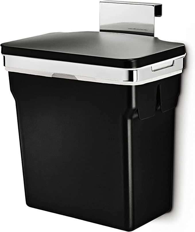 The simplehuman in-cabinet bin hangs inside your kitchen cabinet door for quick and easy access while you are busy at the kitchen counter. The heavy-duty steel frame hooks securely onto the door or can be screwed in for a permanent mount. It also holds a durable plastic bucket that keeps your cabinet free from messy spills and lifts out for easy cleaning. Although the bucket is carrier bag compatible, the simplehuman code R custom fit liner fits this bin perfectly no bunching or slipping for a cleaner experience.