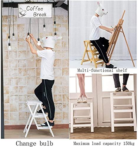 Step Stools for Adults Foldable Kitchen Step Stools Folding Ladder 4 Step Stool Wood for Adult Stool Seat Ladder-Shaped Plant Stand for Kitchen Living Room Bedroom Balcony Garden Shoe Rack White