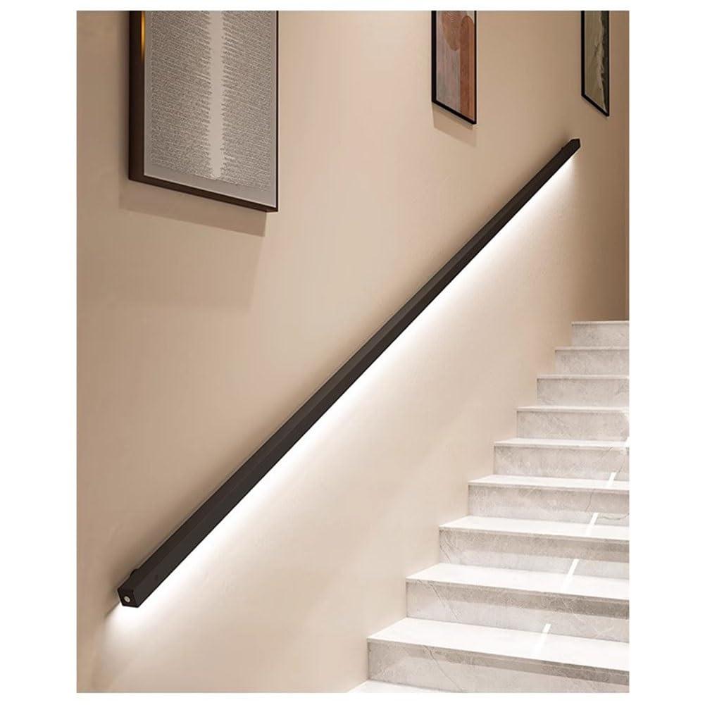 Sxlawesom Sxlawesom LED Staircase Handrail Lighted Handle with Sensor Stainless Steels Handrail Bar Foot Rail Kit for Indoor Stairs Wall Mount Support (Color : Black, Size : 59"/1.5m)