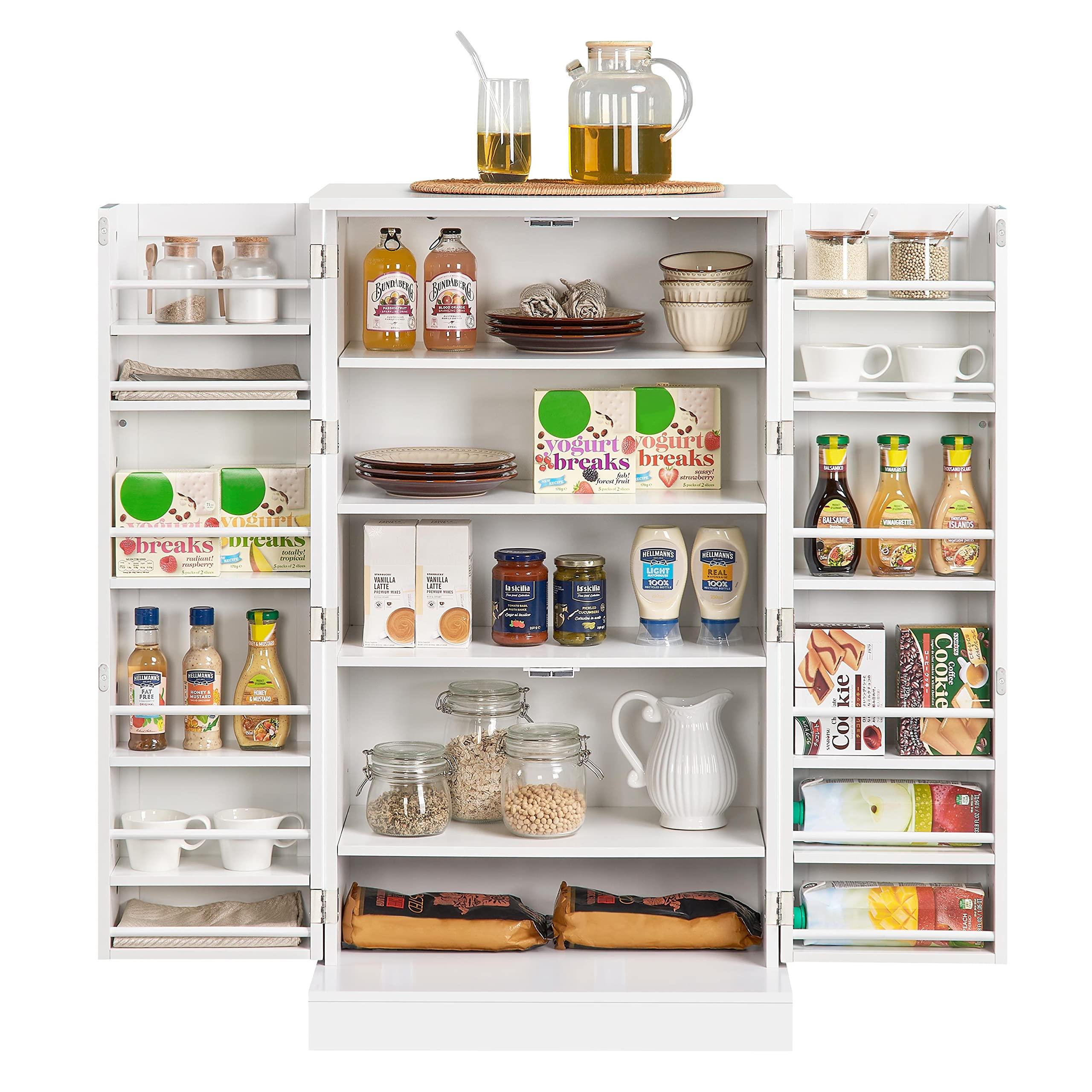 - Ample Storage SpaceOur 41 H kitchen pantry cabinet does the trick in storage. It features a 59.2 cm L 44.7 cm W / 23.3 L 17.6 W countertop, 5 spacious tiers in the middle, and 12 small shelves on the doors (6 for each one). The spacious storage space allows you to keep your kitchen items tidy and organized.