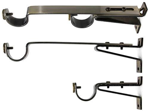 - SIZE: This adjustable double bracket can be used on up to 1.25" Rod. Fits 1 inch, 1 1/8 inch and 1 1/4 inch rods. The Gap between two rods is 2.5 inch. The entire bracket is 9 inches long. Front bracket extended 8 inch from the wall; Back bracket extended 4 inch from the wall. Fully extended up to 10 inches from the wall.