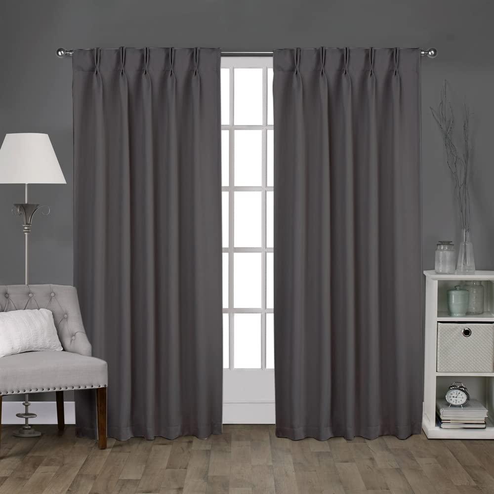 Villey Drapes Villey Drapes Double Pinch Pleated Blackout Curtains Thermal Insulated Room Darkening Window Treatments for Home/Office Pack of 1 Panel Hooks, tiebacks (Dark Grey, 100x120)