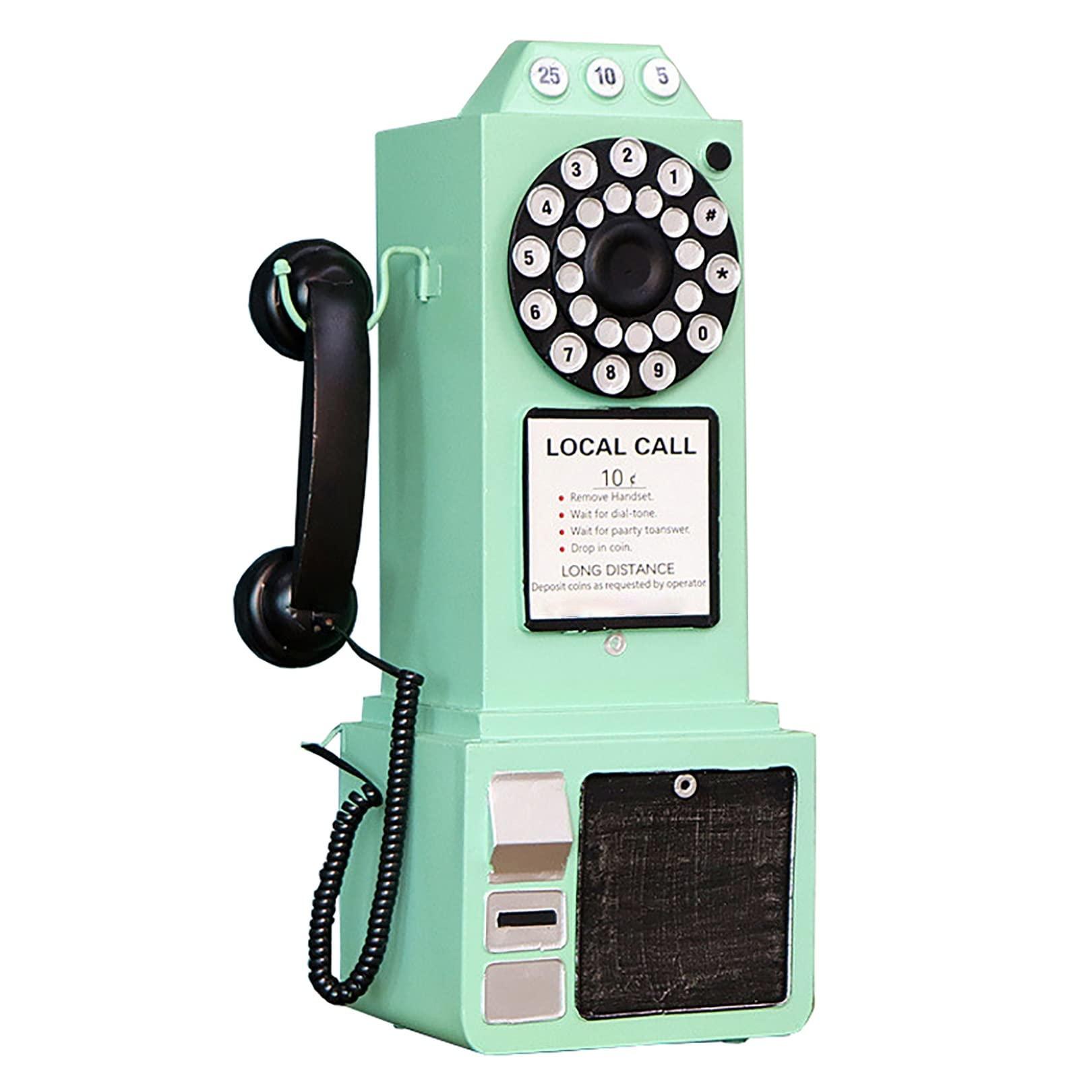 Antique Telephone Decor, Vintage Rotate Classic Look Dial Pay Phone Model Retro Booth Home Decoration Ornament, Classic Antique Telephone Ornaments Wall Mounted Vintage Phone Model.