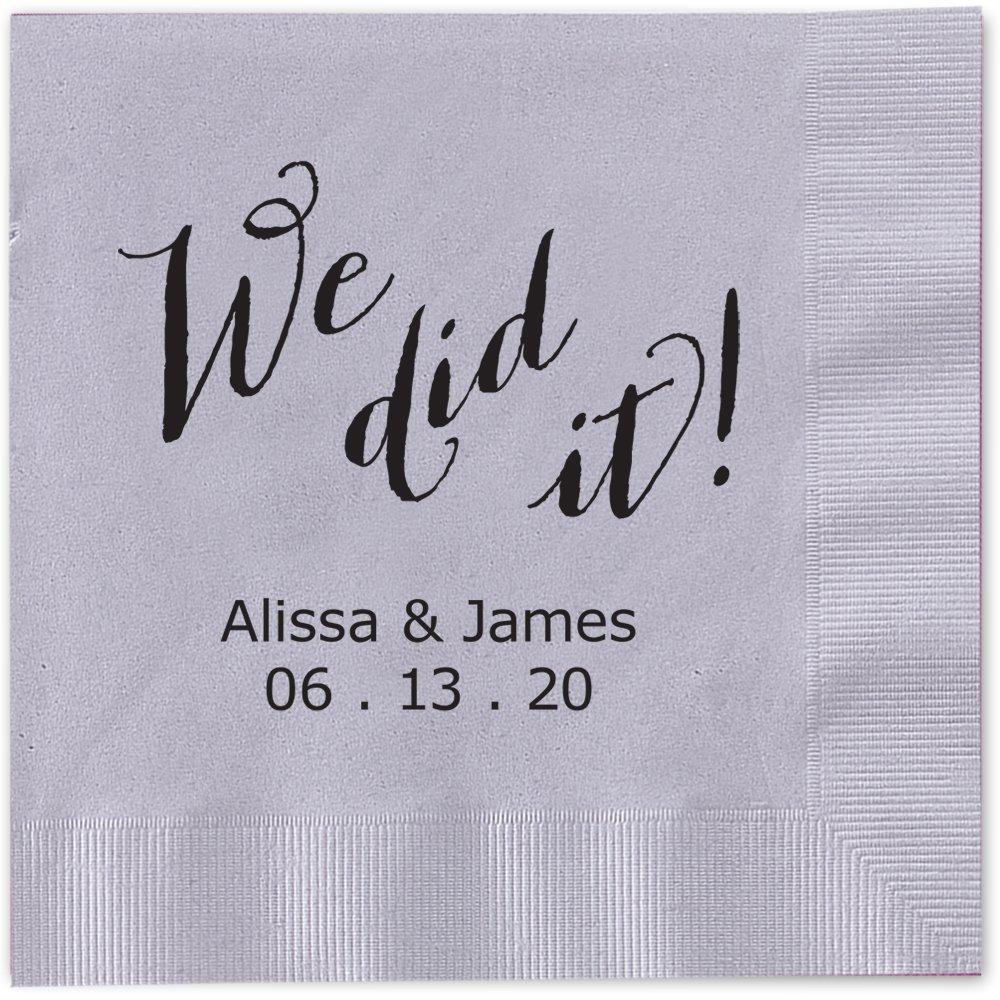 - Design: 'We did it!' with 2 lines of personalization. Maximum of 25 text characters per custom line in your choice of font and one foil color.