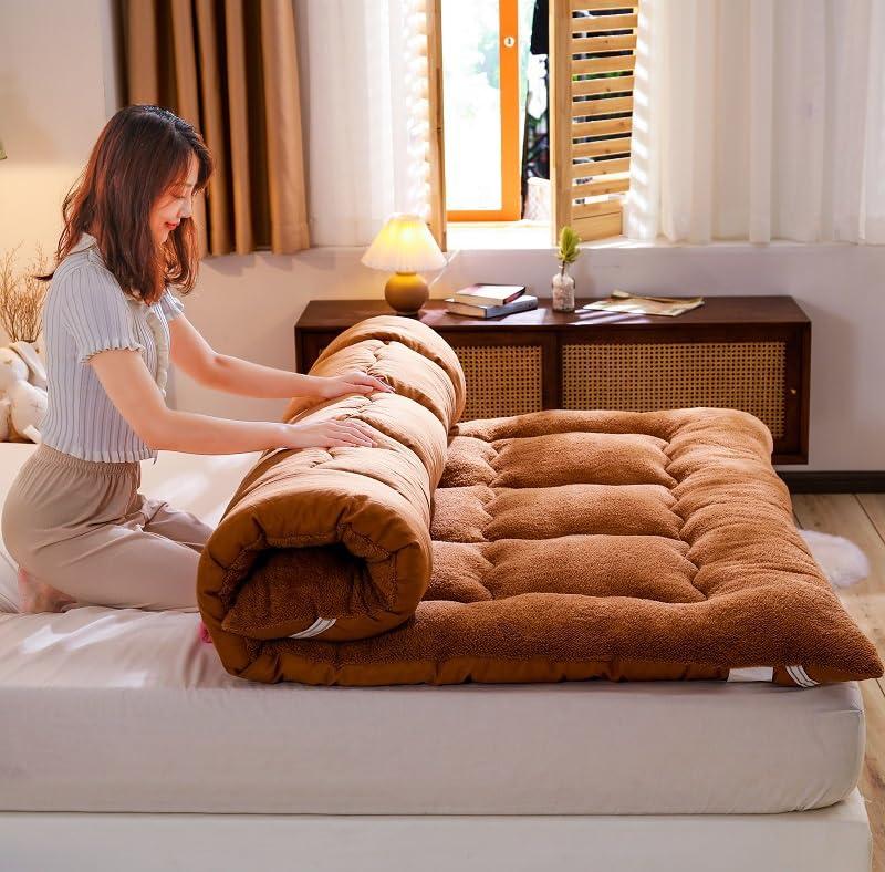 - SKIN-FRIENDLY TATAMI MATTRESSThis futon mattress is made of soft and comfortable skin-friendly lambswool fabric, the portable bed is breathable, not easily deformed, free of formaldehyde and fluorescent agents, etc. Providing you with A quiet and healthy sleeping environment.
