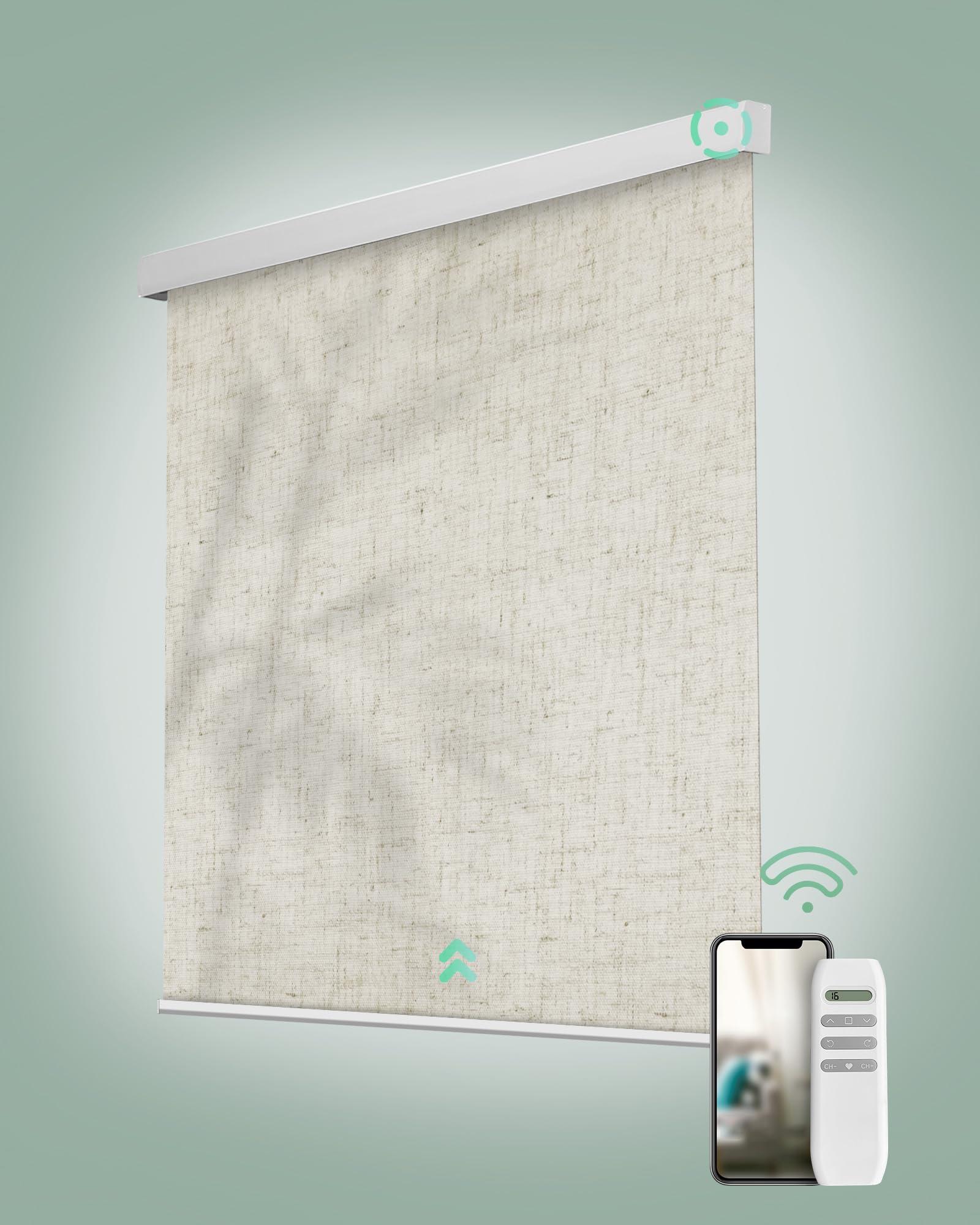 - Motorized Half-shading BlindsCrafted from 100% polyester, our motorized roller shades feature advanced half-shading capability, creating an ideal environment for relaxation and privacy. The upgraded fabric not only filters harsh sunlight but also enhances privacy, reduces noise, and promotes energy efficiencymaking it a win-win for your wallet and the environment. The cordless design prioritizes safety, ideal for living room, bedroom, kids' room, dining room, and office