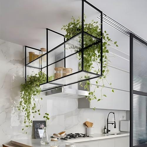 - SAVE SPACE: Ceiling hanging display stands can make full use of the ceiling space, save the floor space and make the room look more transparent and neat. The double-layer design can make better use of space, store more items and improve space utilisation. It can accommodate items of different sizes, such as books, potted plants, kitchen supplies, bathroom supplies and so on.