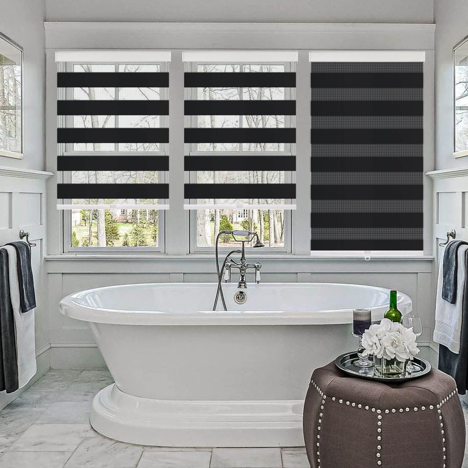 - PREMIUM QUALITY FABRICzebra blinds for windows is made of 100% high quality polyester fiber and aluminum alloy. The fabric is made by laser cutting process, which is flat and not easy to fall off; the aluminum hood and lower beam are strong and durable for long-term maintenance